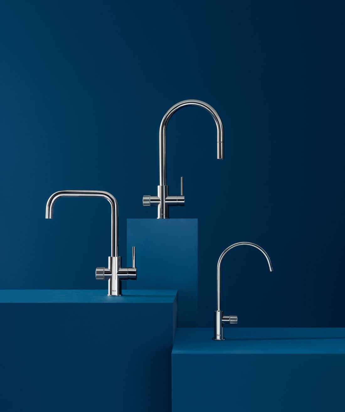 For added convenience and functionality, there are different spout heights for easy pot filling and dishwashing, and ergonomic handles for effortless control. The Roca Aquafy® faucet collection redefines the interaction with the kitchen space.