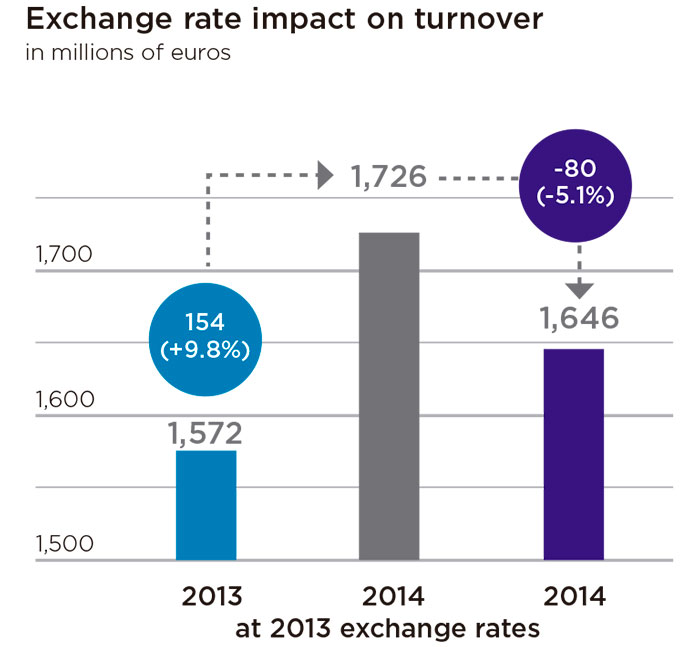 The Group’s shareholders’ equity was 1,216 million euros at year-end 2014, and net financial debt at December 31 2014 stood at 378 million euros.