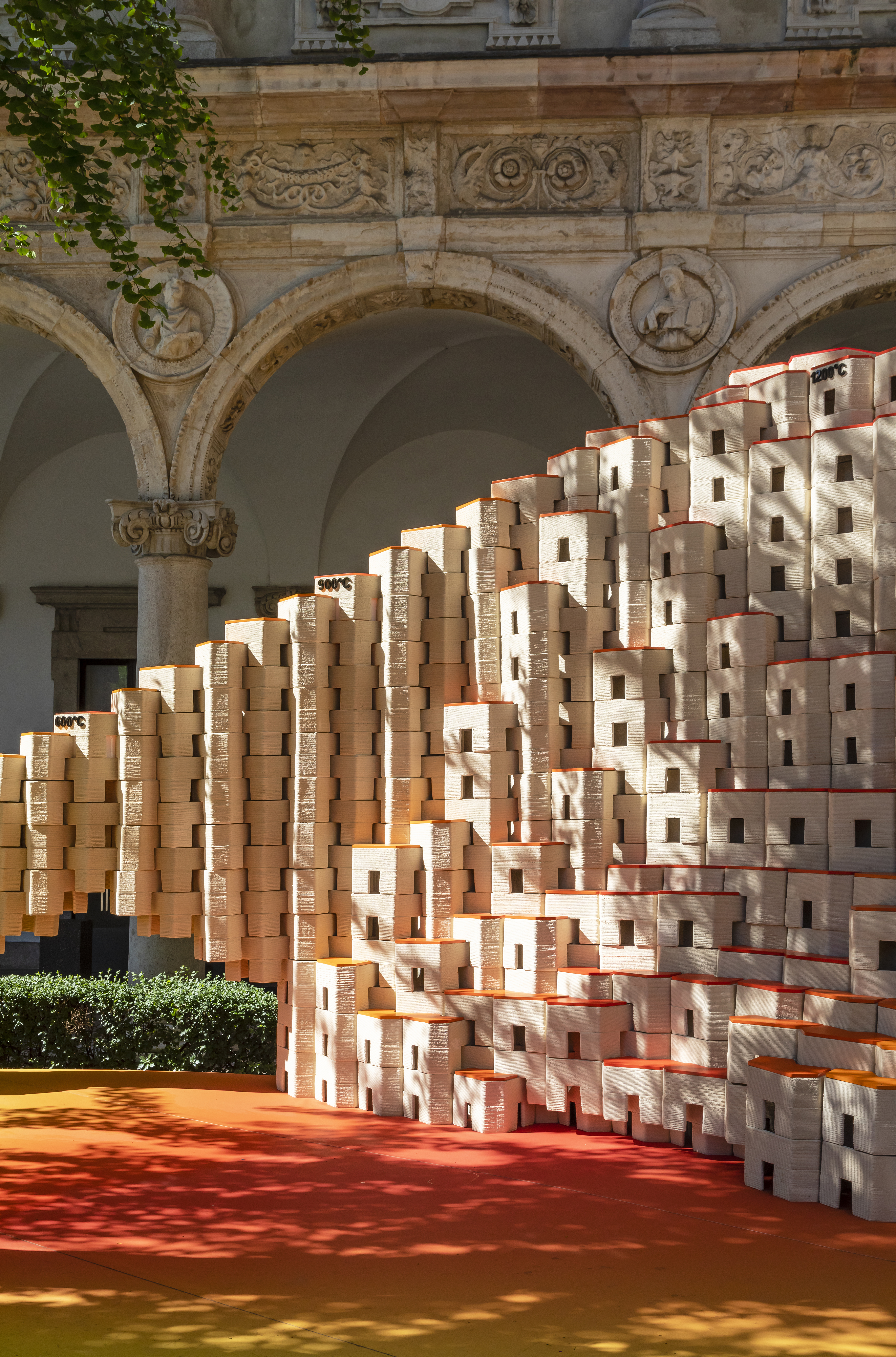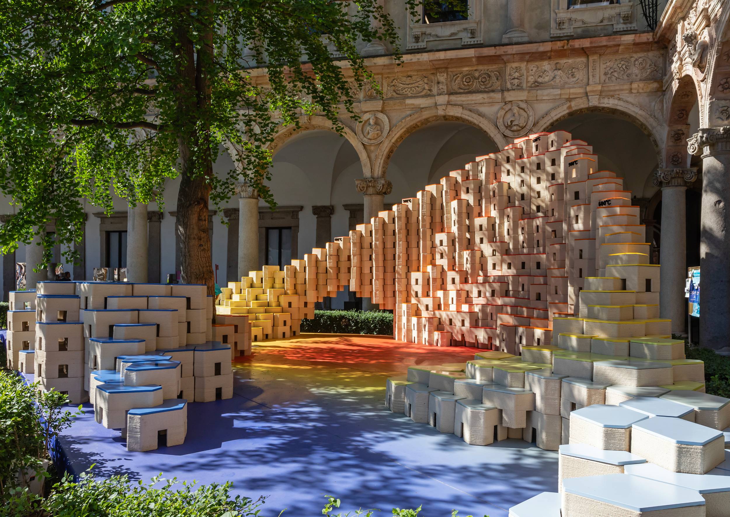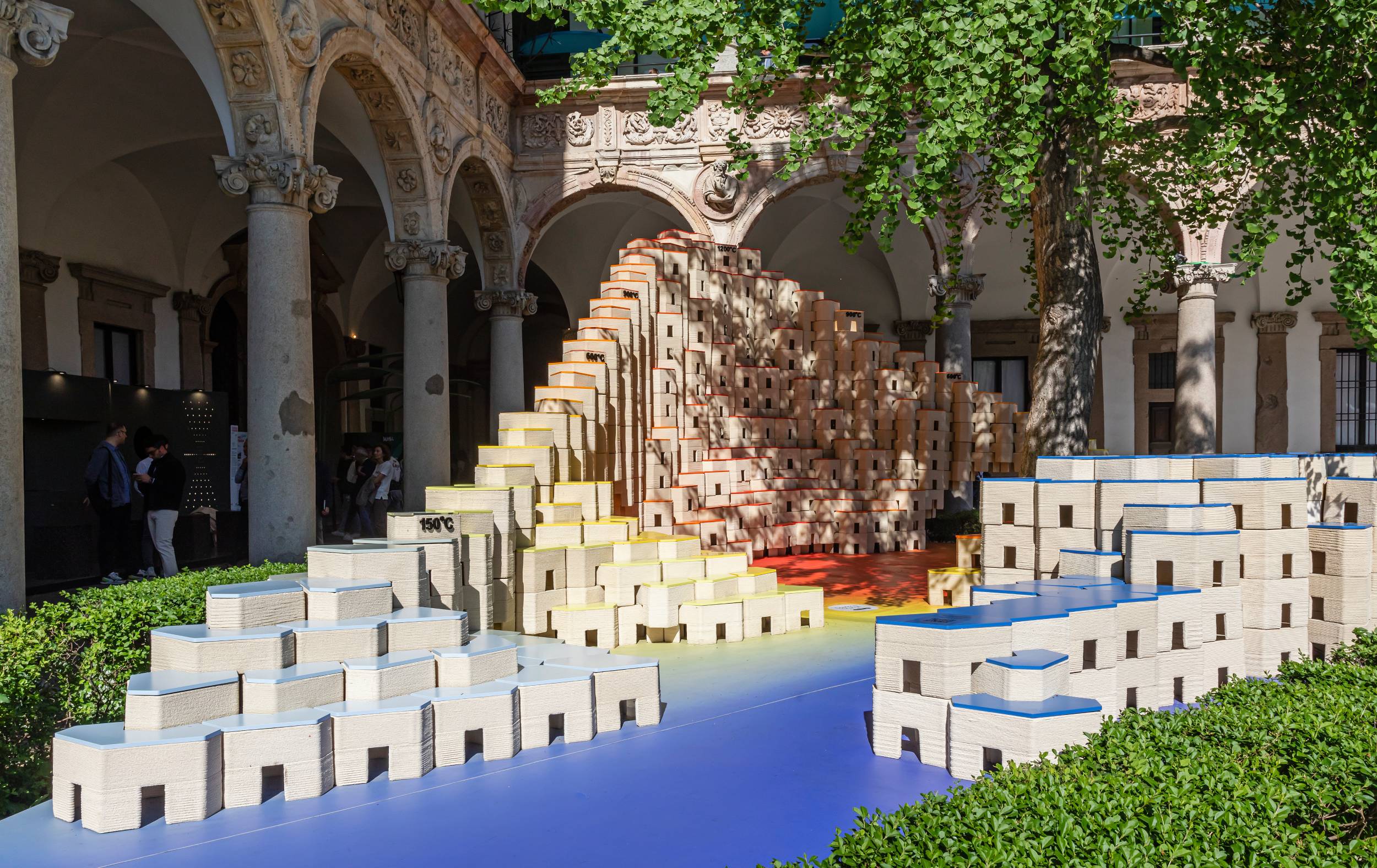Located at the Università degli Studi in Milan, a semi-circular backdrop of 4.5 m high modular ceramic elements invites you to explore the evolution of ceramics and witness the transformation of raw materials into works of art.