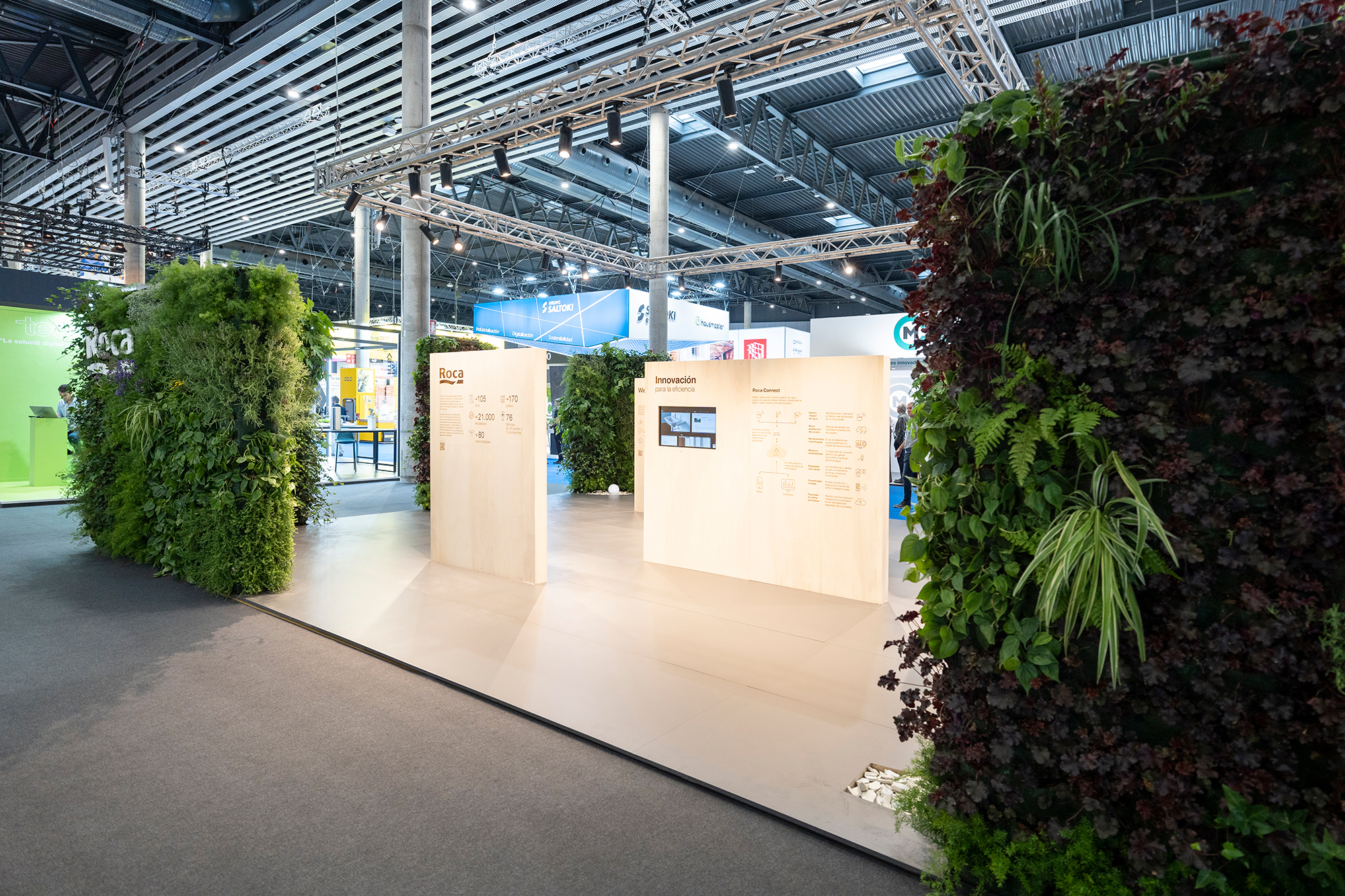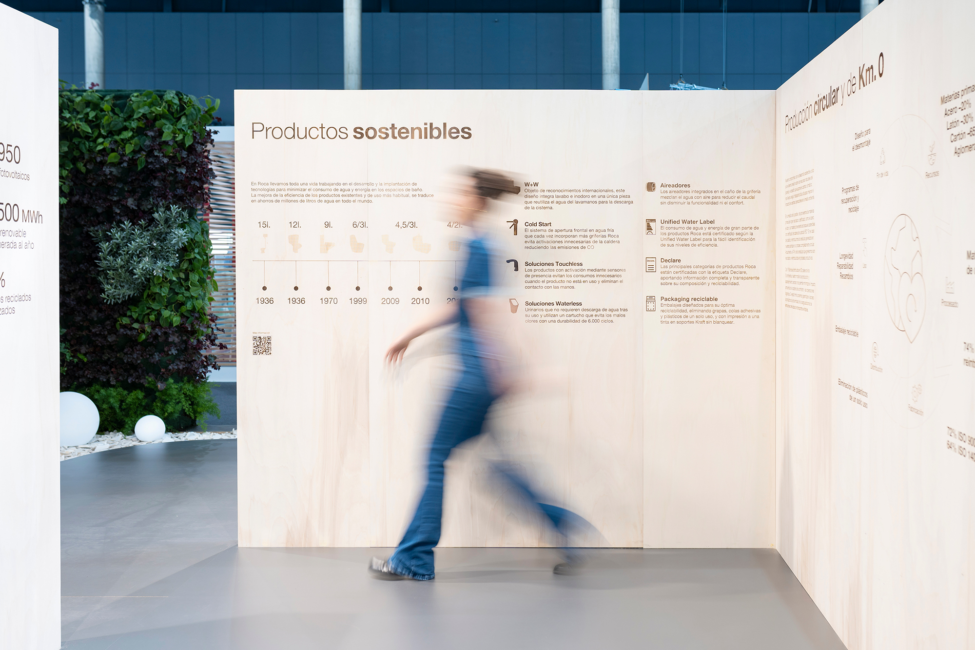 Roca’s stand also included a vertical garden, consisting of more than 200 plants. This living green wall played a vital role in minimizing and neutralizing emissions generated during the construction process. In addition to its environmental benefits, the garden provided an engaging experience for visitors, allowing them to pick a plant to take home and create their own personal oasis. The construction’s carbon footprint will be further offset through several We Are Water Foundation projects.