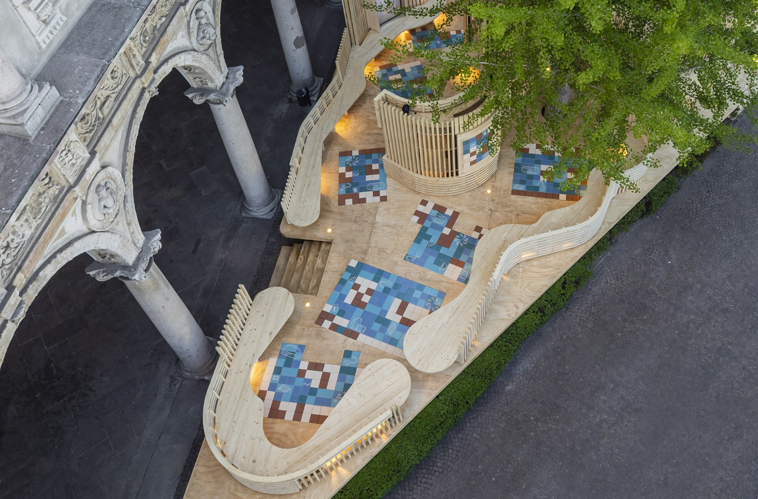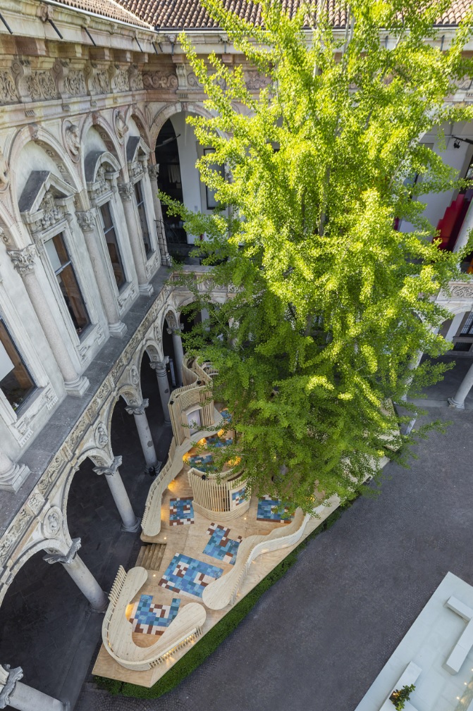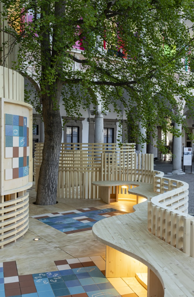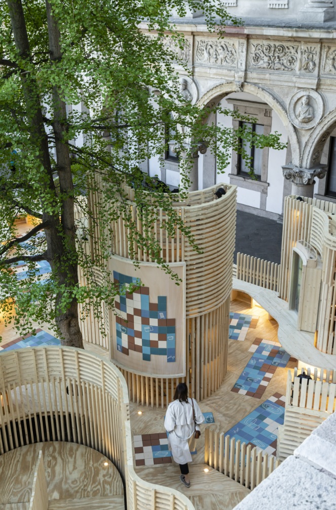 In harmony with the motto Re-Evolution and with a view to environmental sustainability, all the materials that make up the pavilion will be disassembled, recovered, and used in other installations and exhibitions around the world.