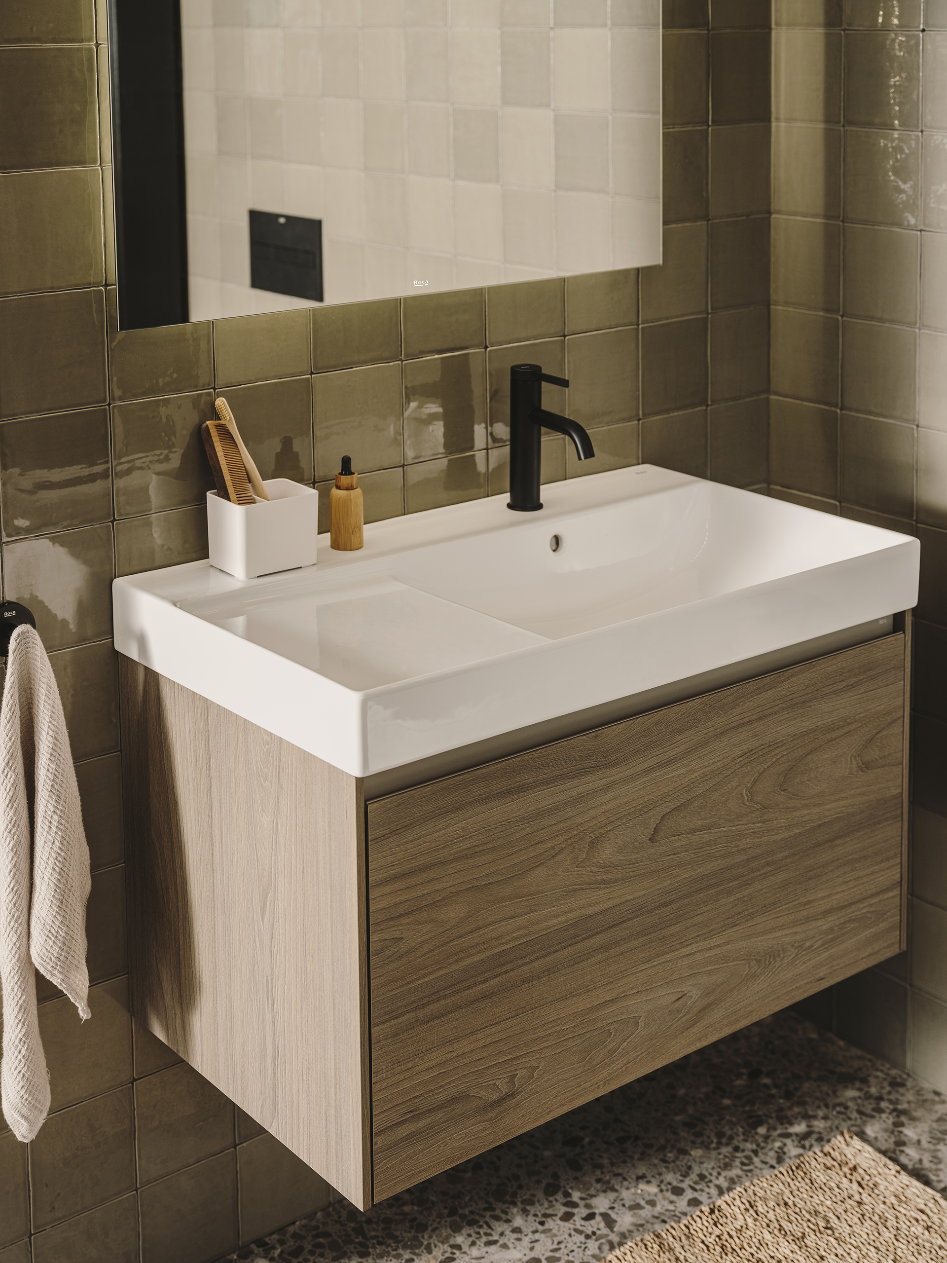 The Ona basins are designed by the Roca Design Centre in collaboration with Noa Design Studio. Ona is characterised by a Mediterranean-inspired aesthetic with soft shapes and geometric lines. The Ona basins are made of Fineceramic®, the exclusive ceramic material developed by Roca, that forms lighter and more resistant pieces with slender contours. This allows for a more sustainable production process, with zero waste, since all the components are of natural origin. A revolutionary and contemporary design that seduces professionals and users alike.
