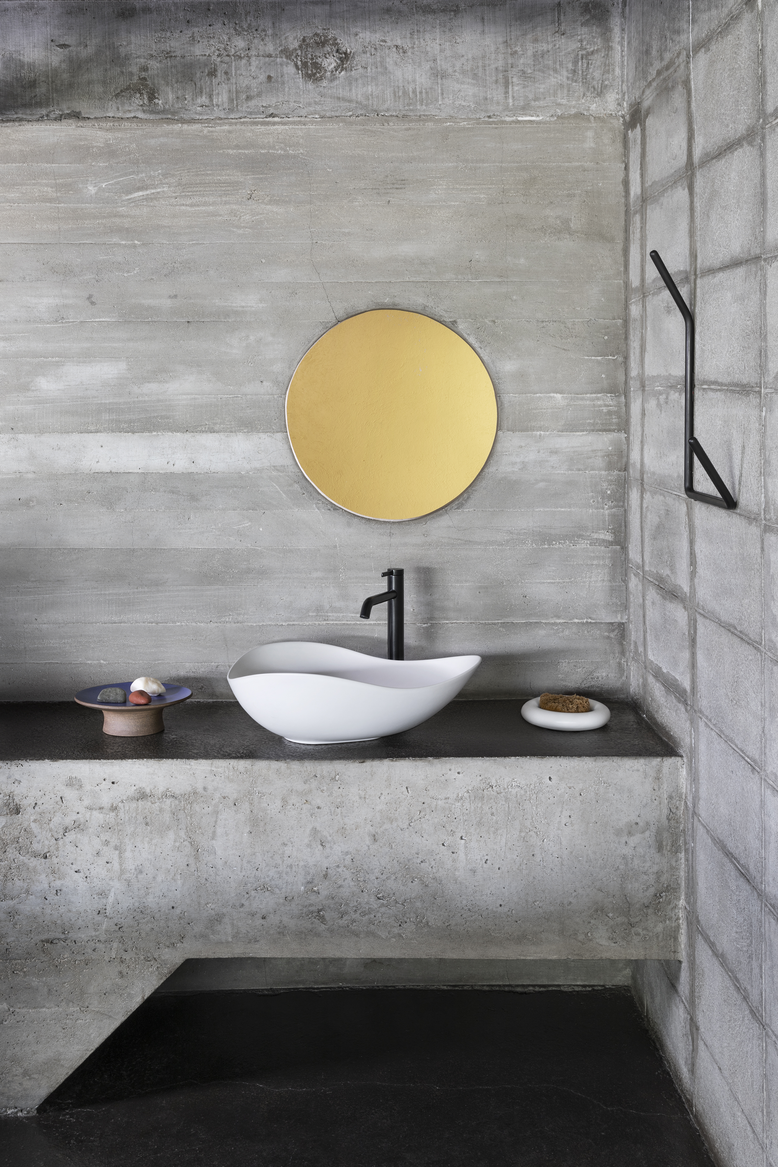 The resulting pieces feature Ruy’s signature sensual shapes, with undulating edges and outlines, resembling more a walk on the beach than simply a basin container. As he would say: “A good piece of Architecture, of design, must have an element of unpredictability, of emotion”.