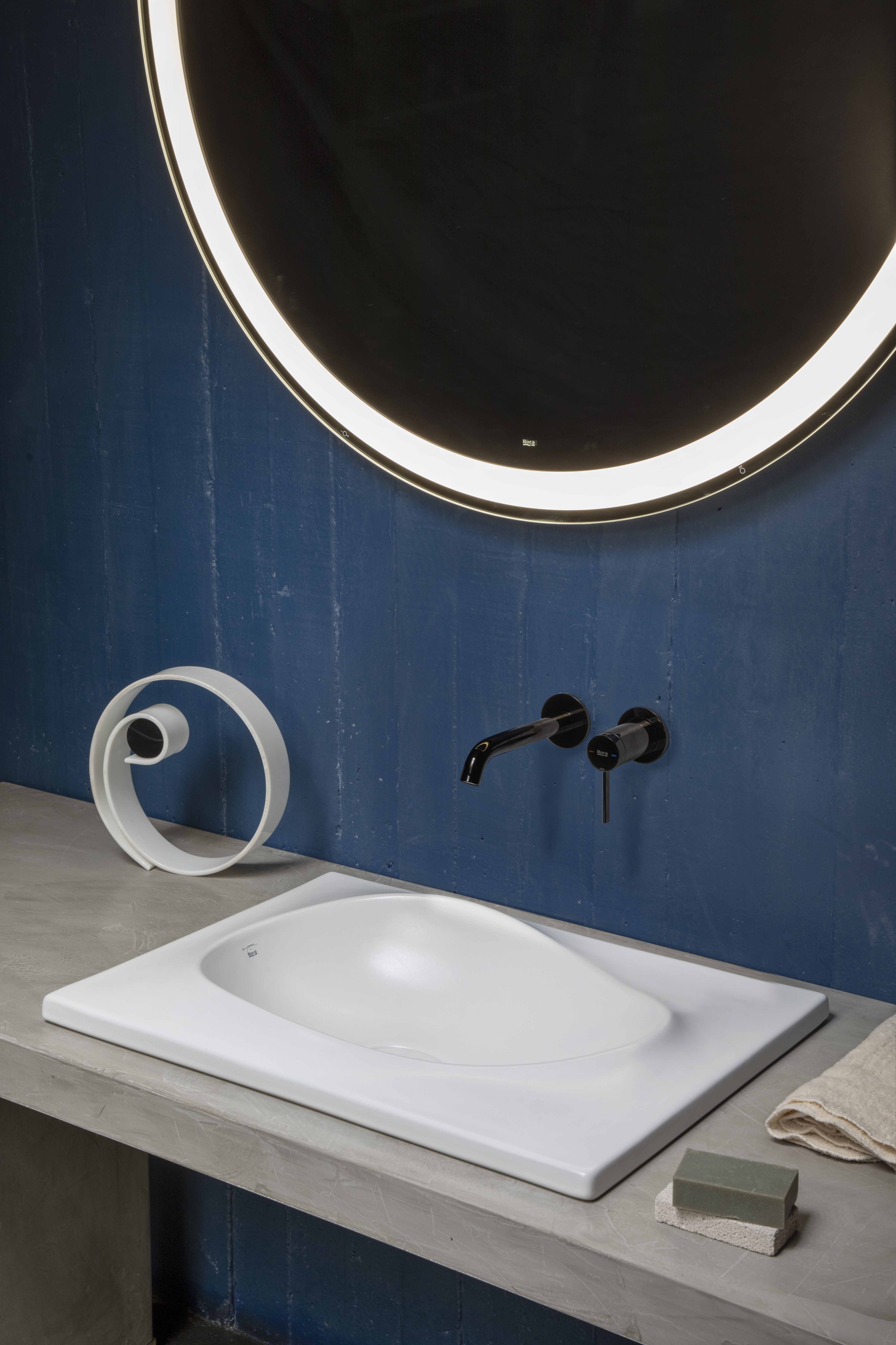 Those daring curves and the organic character of his work made him an ideal guest collaborator for Roca. Ohtake’s close attention to the execution and detailing of his designs, no matter what scale, perfectly aligned him with Roca’s commitment to craftmanship excellence. In developing the collection, the architect found inspiration in an unexpected most primordial item: the egg. “The egg is something of an exceptional quality, with its high rigidity even with such a thin skin!”, he would comment. Seeing a correlation between the lightness of the egg skin and Roca’s Fineceramic material, he applied cutting edge technology to achieve the ultra-thin borders he had envisioned for his sculptural designs for the collection.