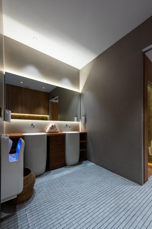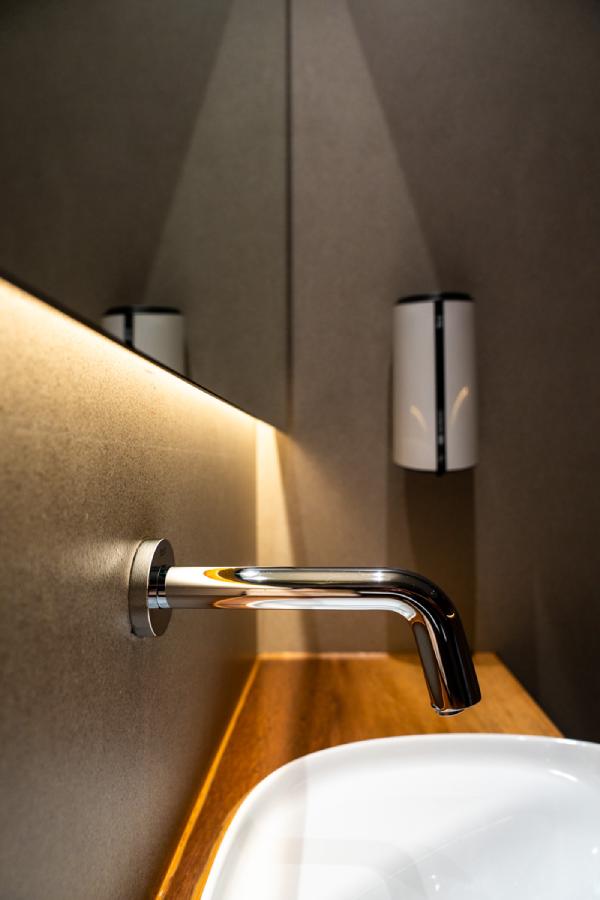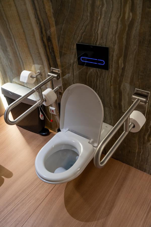 Roca's iconic W+W toilets are featured in separate men's and women's washrooms, complementing the overall design aesthetic while also providing sustainable and efficient solutions. An automatic sliding door adds a touch of modernity and convenience, dividing the space and ensuring privacy for patrons.