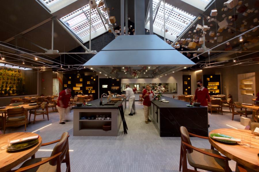 Omeraki Restaurant embodies sustainability through its visionary interiors designed by Enrique Barrera. Collaborating with Roca, Barrera immerses the user in a narrative of environmental consciousness with cutting-edge energy-saving technologies.