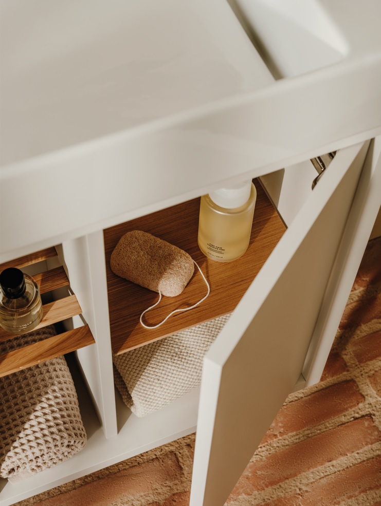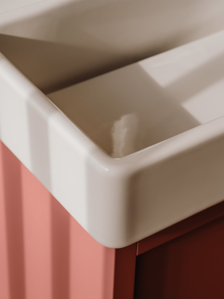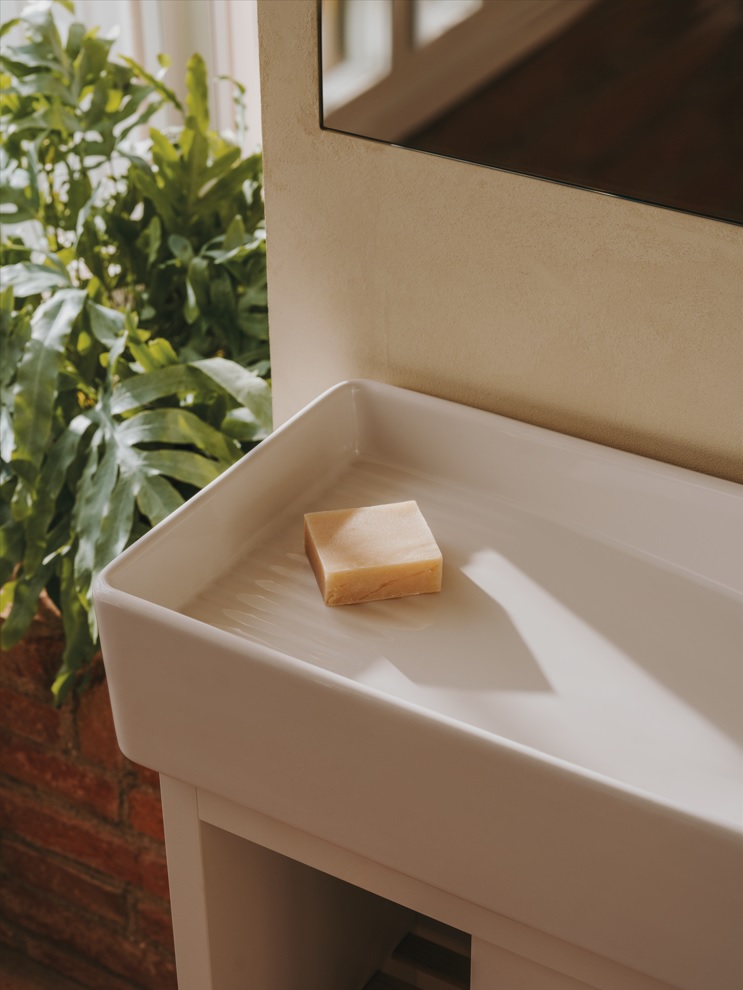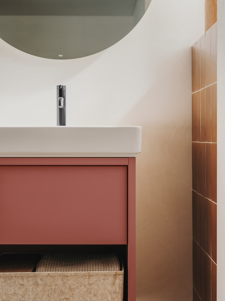 Tura’s furniture is an example of architectural synthesis, as they integrate seamlessly with the washbasins. Designed using straight lines, empty spaces and very simple shapes, the collection features three finishes: off-white, light noble grey and light terracotta, which like the other two, is equally subtle and natural.