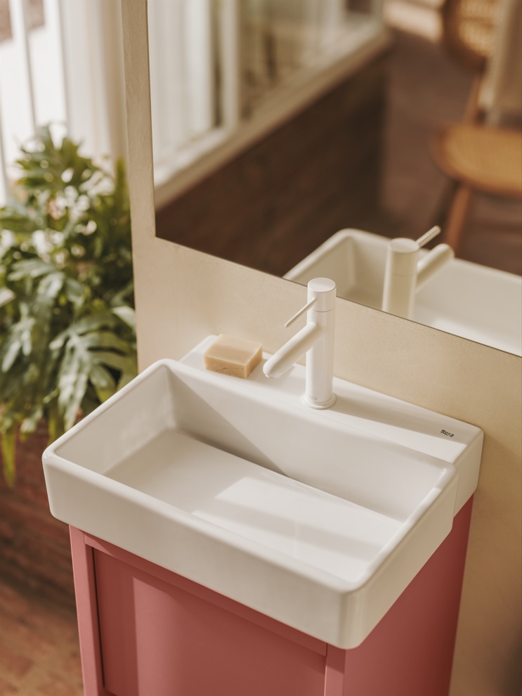 Based on architectural forms and modular shapes, the washbasins are unexpectedly bold and modern. The square and rectilinear lines are met by soft edges and subtle curves and they are designed with ample sink and counter space for everyday needs.
